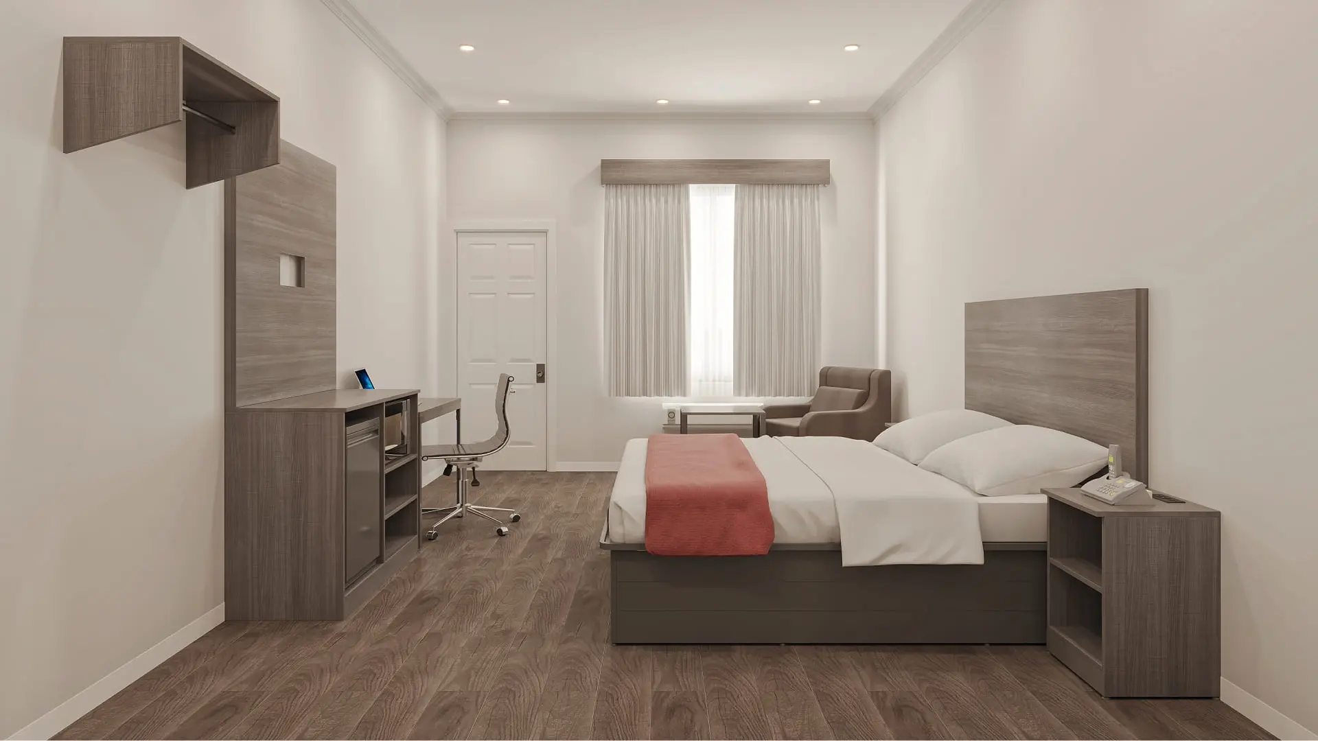 Short Description:Red Roof Inn is a budget hotel designed to provide guests with a comfortable and convenient stay. Our company provides Red Roof Inn hotel furniture, including: sofas, TV cabinets, lockers, bed frames, bedside tables, wardrobes, refrigerator cabinets, dining tables and chairs.We provide one-stop service for Red Roof Inn hotel furniture, and you can purchase hotel furniture products according to your needs.