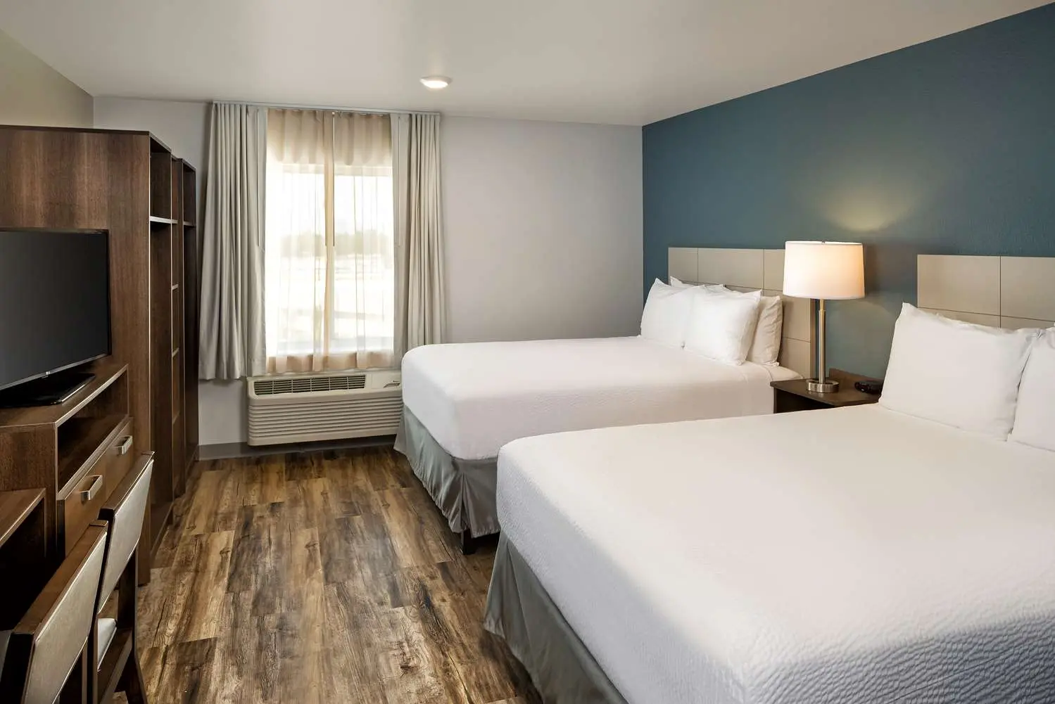 The WoodSpring Suites furniture set features a contemporary aesthetic that complements any hotel room decor. With customizable sizes and a variety of color options available, it allows hotel owners to create a unique ambiance that resonates with their brand identity. This set includes essential pieces such as beds, nightstands, and dressers, all designed to maximize comfort and functionality for guests.