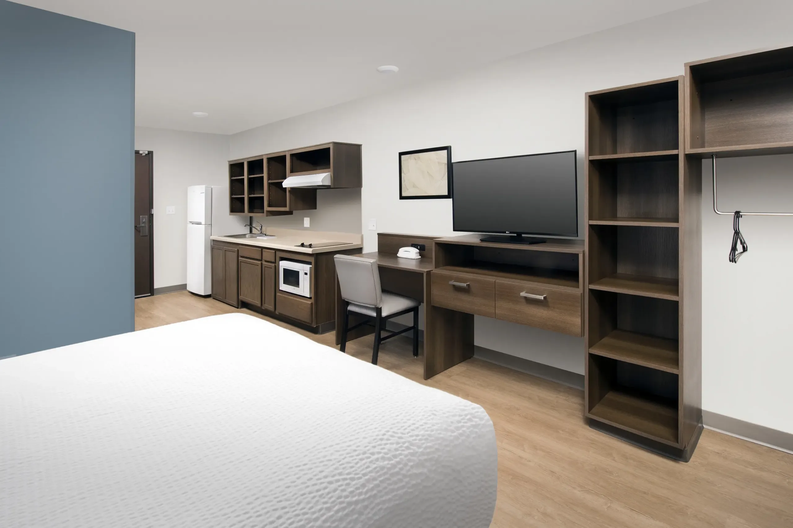 Elevate your hotel’s interior with the WoodSpring Suites Hotel Room Wooden Furniture Set, where modern design meets exceptional comfort.